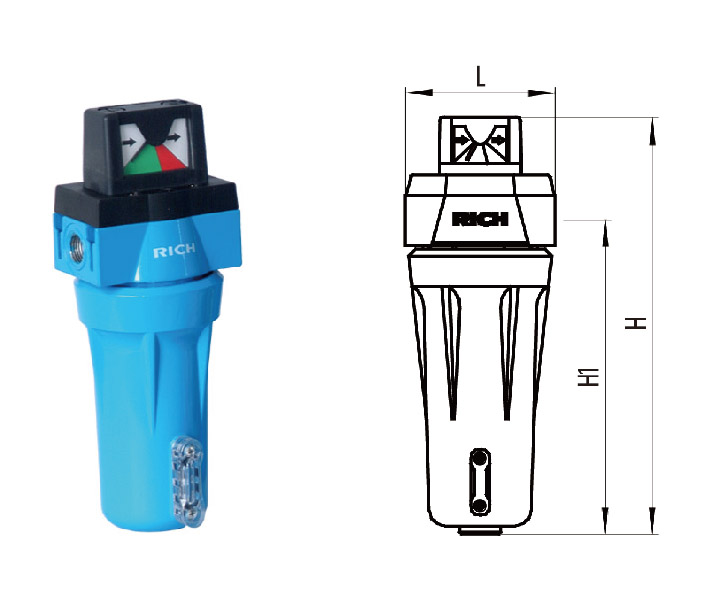 上游压缩空气经进气口和滤芯上盖通气孔进入滤芯,由于滤芯由多层不同作用的过滤材料构成,压缩空气通过拦截、惯性、重力、扩散及吸附等效应,使其中的水汽、尘埃、油雾及化学异味物质被阻隔截留。纯净的压缩空气通过滤芯从滤壳腔体的出气通道进入下游,源源不断地供应气动装置使用,被截留的水分、油雾、尘埃等有害物质被收集在滤壳底部,达到一定容量后由自动排水器自动打开阀门使之排出机外。
