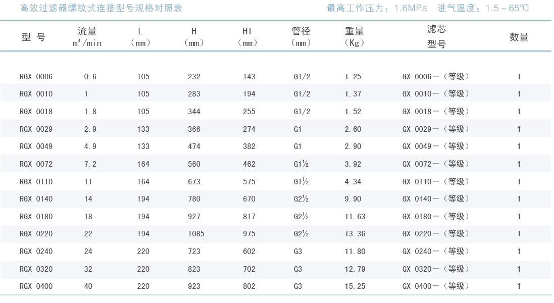 六种过滤器,确保所需质量的供气系统